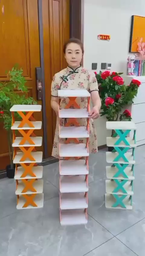 This multi-layer shoe rack is the perfect solution to keep your shoes, bags, and essentials neatly arranged. Made with durable ABS material and a stable X-bracket design, it saves space, looks modern, and fits perfectly in bedrooms, entryways, or living rooms.