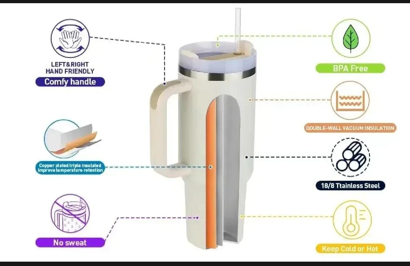 Bring home the ultimate hydration companion 💧 this premium 40oz stainless steel tumbler with straw & handle keeps your drinks cold for 24 hours ❄️ and hot for 12 hours 🔥. Whether you’re on the go, at the gym, driving, or at your desk enjoy fresh sips anytime, anywhere.